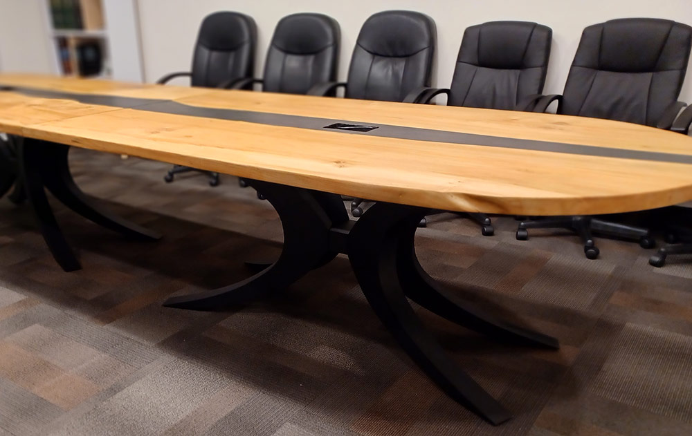Large footprint or small, finished all in solid wood or with custom fabricated metal base, you decide what you want your boardroom table to say about your business. You will definitely not see another like your custom table.